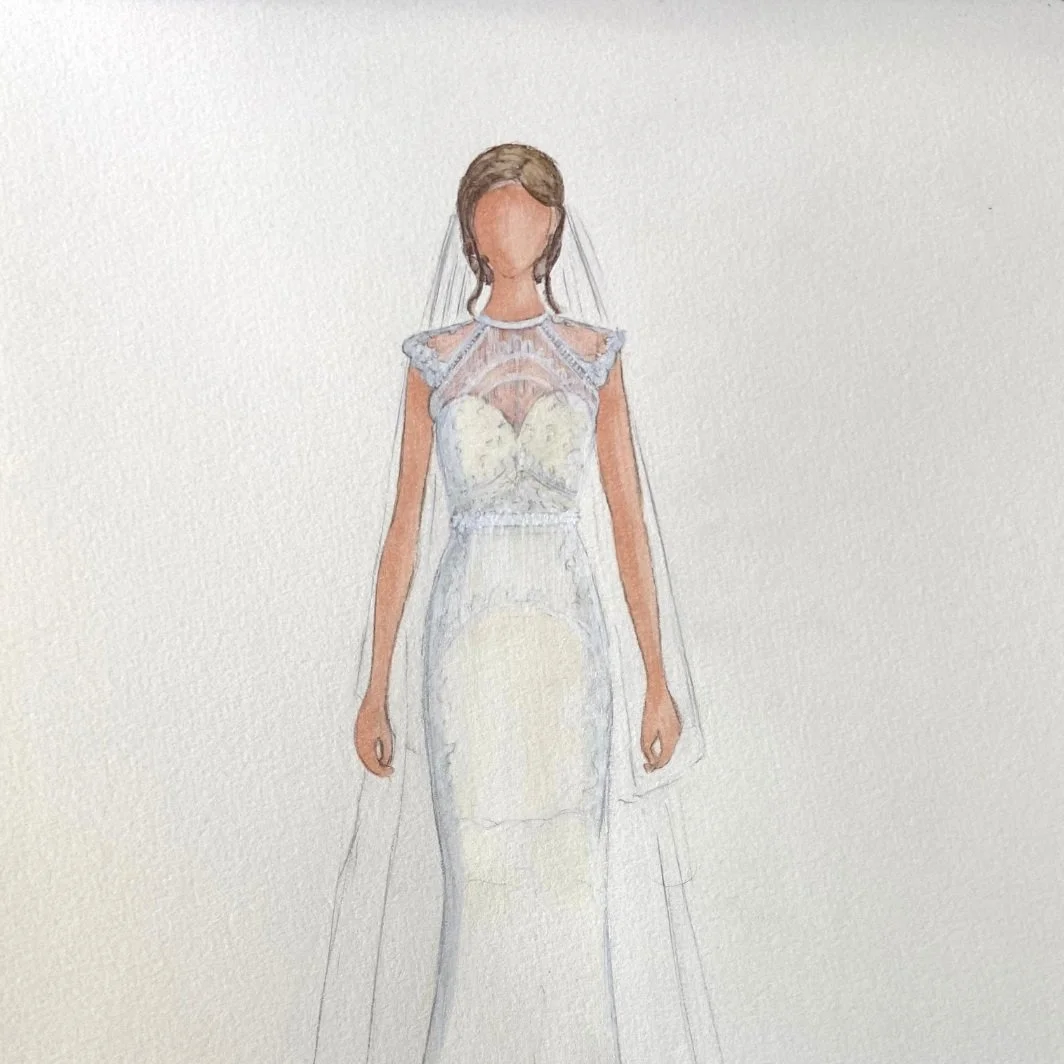Let us commemorate your joyous moments. When creating a fashion sketch, our goal is to capture your personality and style. From artworks of wedding day looks to enjoy after the wedding to creating custom art for signage to enjoy the day of your wedding, we love, love, and bringing your ideas to life!